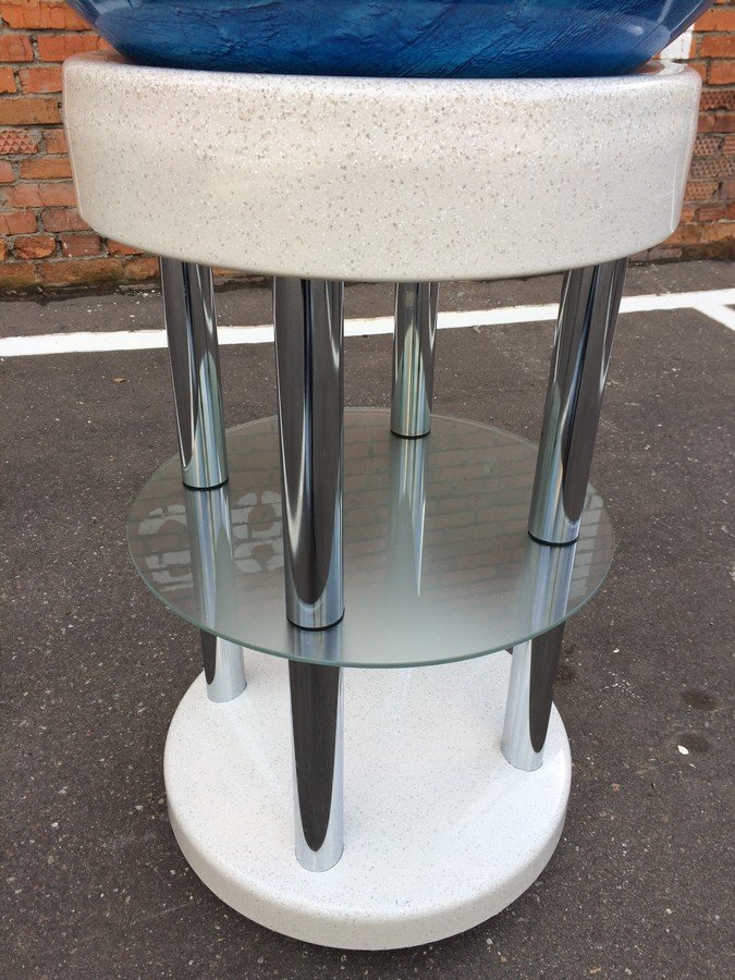 Напольная подставка выполнена в современном стиле и оснащена стеклянной полкой. Поэтому кроме своих основных функций глобус выполняет и роль стильной тумбы с двумя открытыми полками - отличная возможность разместить награды, призы, сертификаты и другие предметы гордости в поле зрения посетителей - потенциальных клиентов и партнеров.