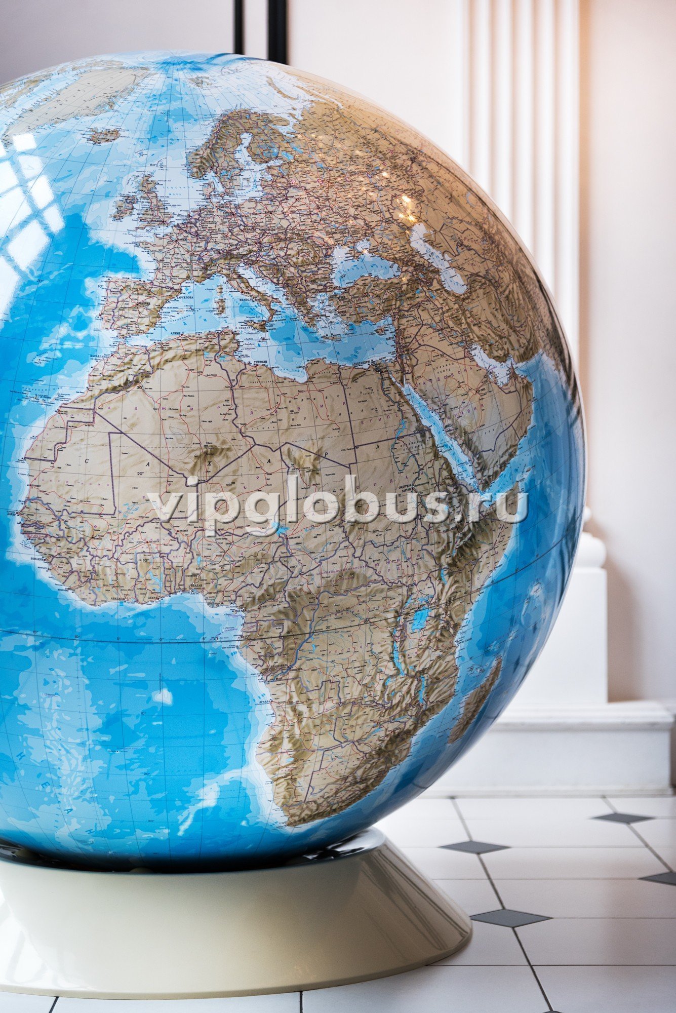 Большой глобус с ландшафтной картой впишется в интерьер практически любого дизайна и будет служить лучшим украшением больших холлов, вестибюлей, кабинетов, приемных.