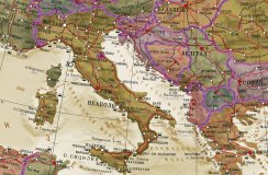 - Карта глобуса современная, политическая, но оформлена в стиле ретро - вместо ярких цветов использованы приглушенные тона, оттенки коричневого и терракота.